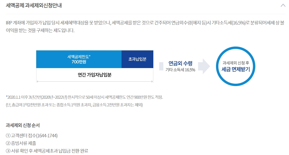 IRP계좌에 연간 세액공제한도인 700만 원을 넘게 돈을 넣었다면 다음연도로 전환 신청하여 세액공제를 받을 수 있다.