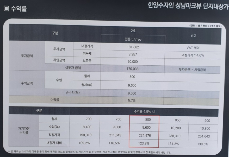 단지내 상가 수익률은 투자금액 대비 좋다고 홍보하고 있다. 사람들이 거주하고 있는 지금 유동인구가 많지 않아 보여 저 수익률이 나올지는 모르겠다.