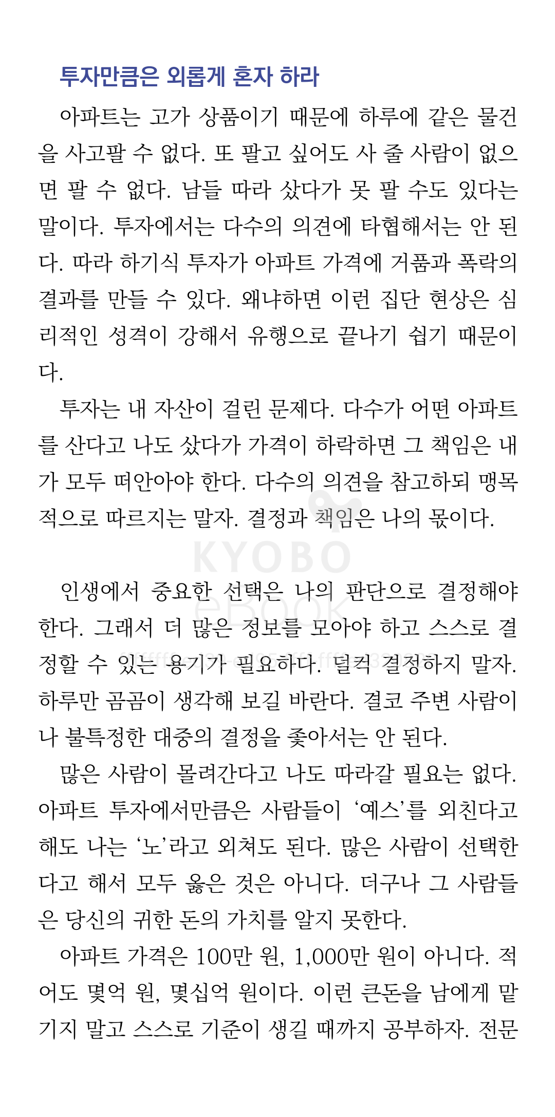 투자는 내 자산이 걸린 문제다. 다수의 의견을 참고는 하지만 맹목적으로 따르지는 말자. 결정과 책임은 나의 몫이다.