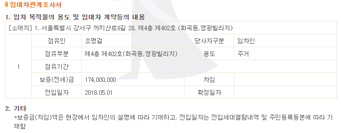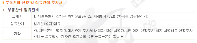 위에 감정평가요항표에는 임차관계가 미상이라고 나와있는데 현황조사서를 살펴보니 검유하고 있는 사람이 있었다.