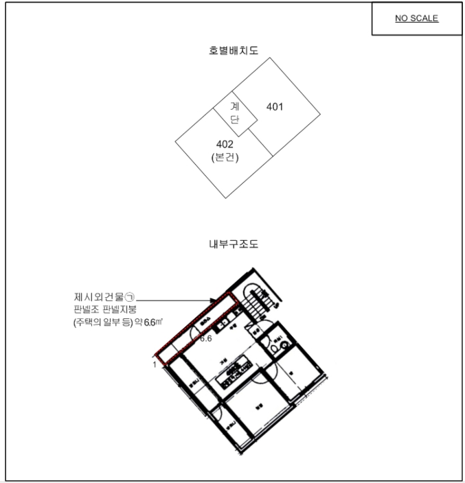 그리고 내부를 살펴보면 1층에 2가구가 살고 있다는 것을 알 수 있다. 내부구조도에서 보면 베란다가 있고