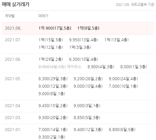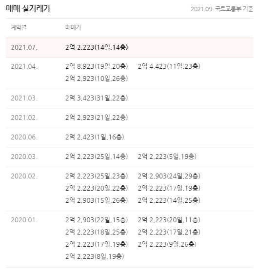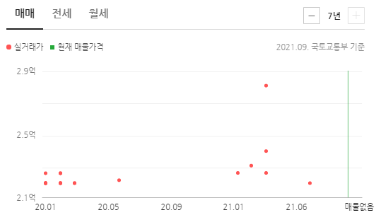 매매 실거래가는 79m^기준으로 살펴보면 2020년 1월부터 2억 초반에 거래가 되었다. 네이버 부동산 지도에서 매매 가격을 확인할 수 있다.